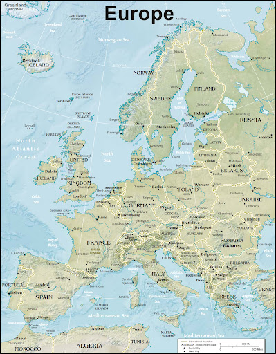 Europe Map With Physical Features. Place World War I And The Five Themes Of Geography. It is bordered by the Arctic Ocean to the north the Atlantic Ocean to the west Asia to the east and the Mediterranean Sea to the south. The Physical Map of Europe shows that most of the continent is a Plain the North European Plain being the dominant one.